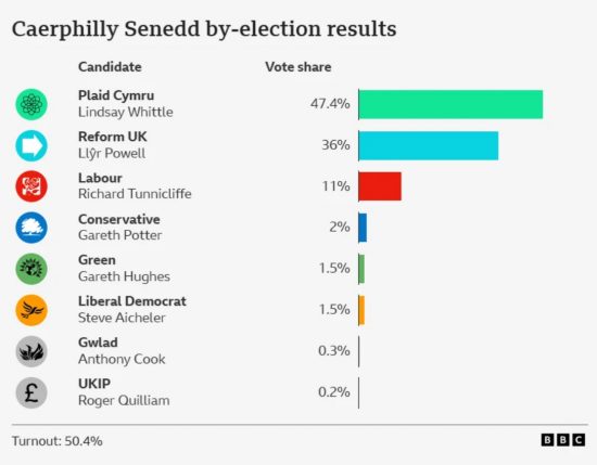 The Caerphilly Senedd by-election end result yesterday was reported prematurely as being on a knife-edge between Plaid Cymru and Reform, with Labour, the incumbents in all sorts of elections within the constituency during the last century, being forecast to be swept from energy.