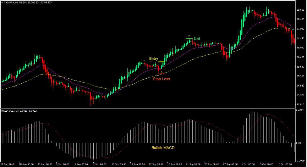 This buying and selling technique is a working buying and selling technique. When you would look intently, the help or resistance strains fashioned throughout a retracement would normally be part of a flag sample. Flag patterns are excessive chance development continuation patterns. Nonetheless, figuring out these patterns might show to be very troublesome. By combining these technical indicators to kind this template, merchants can now extra simply determine these situations as breakouts proper after a retracement that happen throughout robust trending markets.