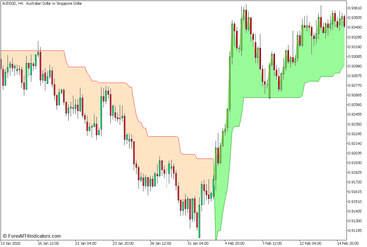 This model of the Supertrend indicator additionally shades the realm between value motion and the brink to point the route of the pattern. It shades the realm pale inexperienced to point an uptrend and bisque to point a downtrend.