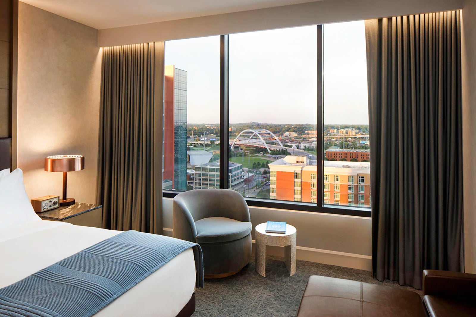 Rooms listed below are clear, subtle and thoughtfully laid out. They’ve full partitions of home windows displaying off town’s skyline and Nashville’s rolling hills. Moreover, they function 50-inch TVs and enormous desks excellent for enterprise vacationers or distant staff.